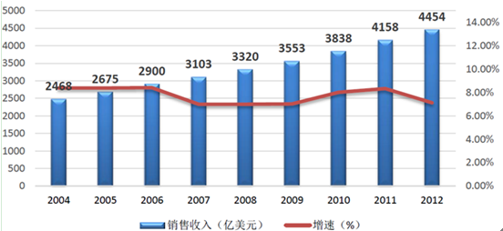 全球醫療電子市場在移動醫療、智慧醫療、遠程醫療等醫療新模式的帶動下,正處于穩步增長階段。2014年市場銷售額約2255億美元,同比增長5.67%。