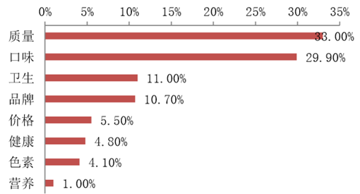 調味品種類多、不同產品都有其適用對象和使用方法,是一個多消費層次的市場。隨著飲食 趨勢趨于健康,以及醬油的功能性愈發突出,醬油逐漸搶占了味精、雞精、鹽等部分感覺用 了不太健康的調味品的份額,地位愈發重要。醬油是大豆做的,鮮味更加自然,味精、雞精等被認為是人工合成的,吃多了不利于滲透健 康。醬油產品種類豐富,包括老抽、生抽、海鮮醬油、蠔油等等,可以融合草菇、生姜等材 料,提鮮/上色的同時帶有咸味,且液體狀易入味,適用性廣,在家庭和餐飲渠道逐步替代 味精、雞精、鹽等產品。以醬油和醋為例,市場調查發現,調味品的品質和口味是決定消費者購買與否的關鍵因素, 產品力強、附加值高,則能夠搶占市場份額,且數據顯示,消費者對價格的關注度較低,價 格不是競爭的關鍵。