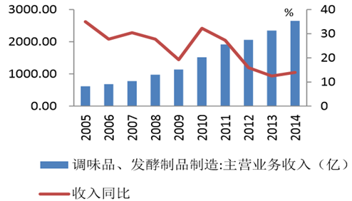 調味品、發酵制品行業收入規模及增速