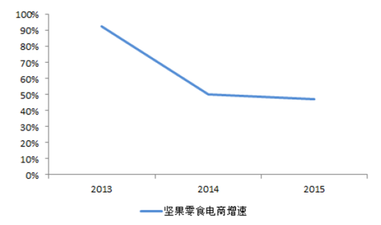 根據(jù)阿里研究院數(shù)據(jù),零食堅(jiān)果特產(chǎn)品類2015年增速為47.13%,比2014年的50.4%增速略微下降,但是仍保持了較快的增速。