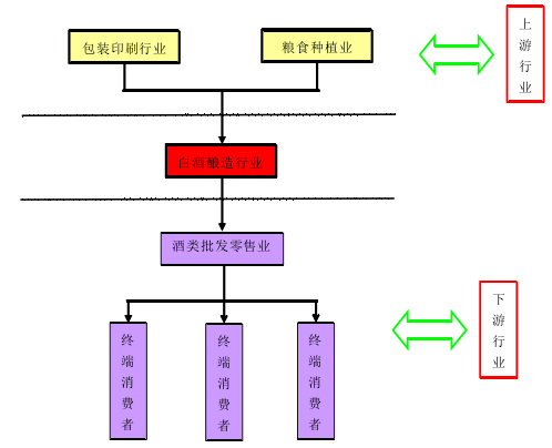 中經先略數據中心《2016-2022年中國白酒行業市場運營態勢及發展前景預測報告》指出:白酒行業的上游行業是糧食種植業和包裝印刷行業,下游客戶主要為酒類批發零售業,終端消費者為各類人群。此外,白酒生產需要良好的水質作為保證。