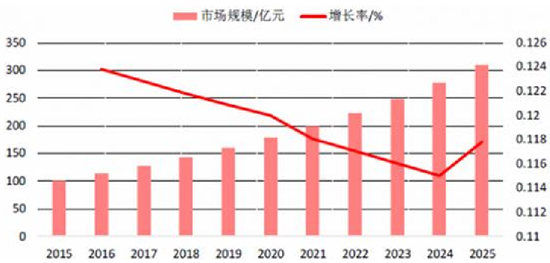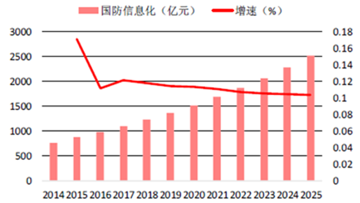 2016-2025 年中國(guó)國(guó)防信息化開支預(yù)測(cè)
