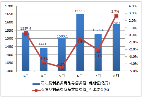 2016年中國石油及石油制品零售總額分析
