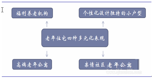 隨著社會發(fā)展,我國的家庭結構逐步走向小型化,老年人的住宅消費觀念也隨之發(fā)生變化,從基本的住宅消費逐步發(fā)展到提高住宅消費品質上來,老年人的需求呈現(xiàn)出多元化的特征。老年公寓市場上已經(jīng)針對不同類型消費群體的高端老年公寓、親情社區(qū)型老年公寓、福養(yǎng)老機構、利性設計獨特的小戶型房等多種產(chǎn)品。