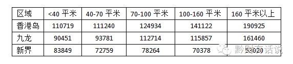 下表是香港的價(jià)格(香港統(tǒng)計(jì)屬,www.statistics.gov.hk/pub/B10100822016MM01B01.xls)。該表為香港房?jī)r(jià)最高峰時(shí),2015年8月的數(shù)據(jù),單位已換算為建筑面積和人民幣。