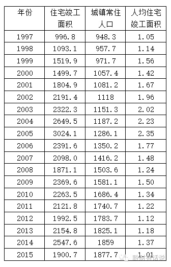 下表是北京歷年住宅竣工面積,包括商品住宅和非商品住宅(數(shù)據(jù)來(lái)源為北京統(tǒng)計(jì)年鑒)。可以看到,2005年前,人均住宅竣工面積快速增加,2005年時(shí),平均每人每年能新竣工達(dá)到2.35平米,這是一個(gè)很可觀的數(shù)字。到2015年時(shí),這一數(shù)字下降到1.01平米。