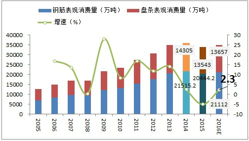 今年以來,基建投資保持較快增長,房地產投資增速超預期反彈,政府增幅穩增長基調不變,預計鋼材需求較去年有所回升。但目前來看,經濟回暖基礎尚不穩固,且固定資產投資增速趨緩,因此建筑鋼材需求回升幅度有限,增速預計為2.3%左右。