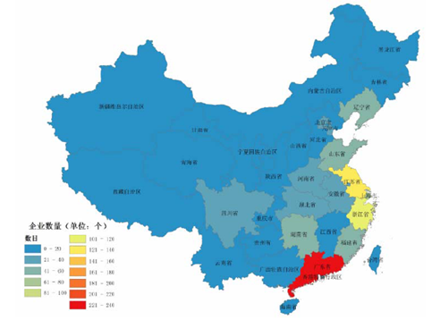 全國(guó)涂料企業(yè)分省數(shù)量圖