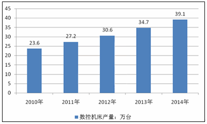 我國的數控機床無論從產品種類、技術水平、質量和產量上都取得高速發展,在一些關鍵技術方面也取得重大突破。2010年我國數控機床產量達到23.6萬臺,同比增長62.2%,中國可供市場的數控機床有1500種,幾乎覆蓋了整個金屬切削機床的品種類別和主要的鍛壓機械。2014年我國數控機床產量達到39.1萬臺。