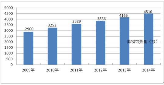 根據國家文物局年度博物館年檢備案情況,截至2014年底全國博物館總數達到了4510家,比2013年度增加了345家,繼續保持高速增長態勢。