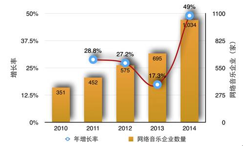 2010-2014年獲得網絡音樂相關業務經營資質的企業比較表