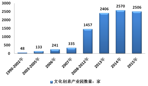 1990-2015年中國文化創意產業園區數量