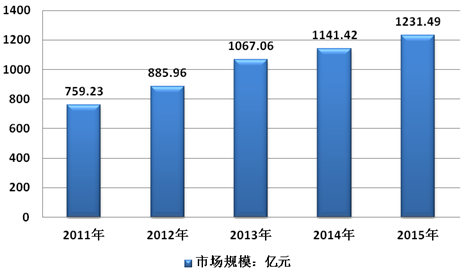 2011-2015年中國糖果行業市場規模情況