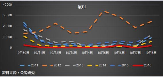 對比去年同期來看,總計成交面積僅為去年的12%,數據顯示,去年廈門在9月30日至10月7日合計成交面積為51857.81平方米。
