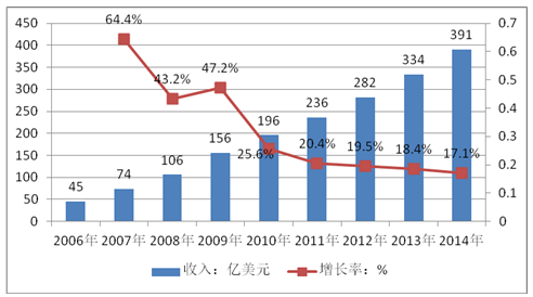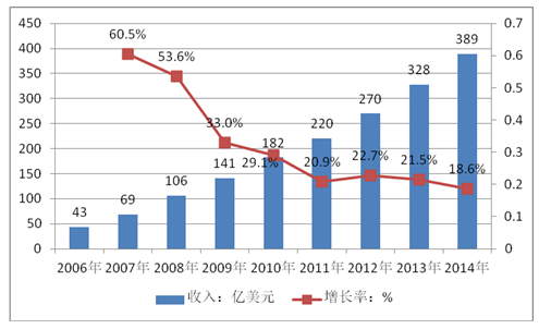Verizon2006-2014年美國無線數據業務收入情況