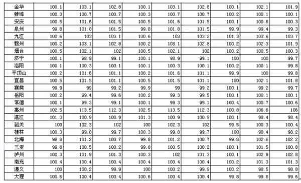 注:全國房地產開發景氣指數遵循經濟周期波動的理論,以景氣循環理論與景氣循環分析方法為依據,運用時間序列、多元統計、計量經濟分析方法,以房地產開發投資為基準指標,選取了房地產投資、資金、面積、銷售有關指標,剔除季節因素和隨機因素的影響,采用增長率循環方法編制而成。國房景氣指數選擇2000年為基年,將其增長水平定為100。通常情況下,國房景氣指數100點是最合適的水平,95至105點之間為適度水平,95以下為較低水平,105以上為偏高水平。