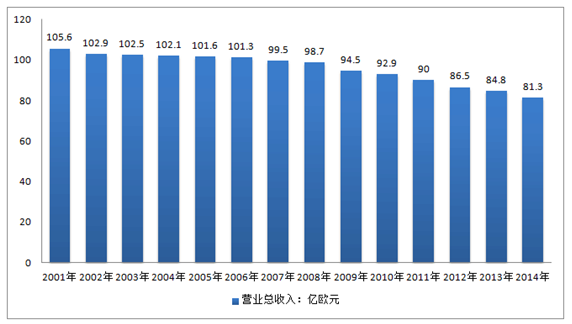 核心提示:法國報業營業收入:億歐元資料來源:公開資料整理隨著讀者和廣告客戶紛紛轉向互聯網,法國報紙的處境極其糟糕。據世界報業協會說,在法國,每1000人平均只買154份日報,低于古巴、立陶宛和蘇里南,只有德國和英國日報購買量的一半。許多分析人士認法國報業營業收入:億歐元