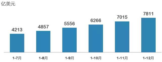 2015年7-12月我國電子信息產(chǎn)品累計出口額情況