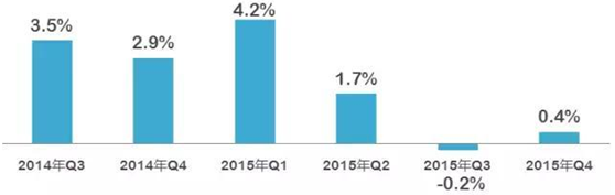 2014年Q3~2015年Q4我國計算機行業(yè)銷售產(chǎn)值增速對比情況(%)