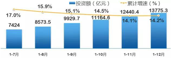 1-12月,電子信息產(chǎn)業(yè)500萬元以上項目完成固定資產(chǎn)投資額13775.3億元,同比增長14.2%。1-12月,電子信息產(chǎn)業(yè)新增固定資產(chǎn)9658.9億元,同比增長20.6%。