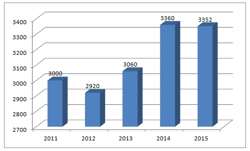 受到國內“中國2025制造”、“互聯網+”等新世紀發展戰略的帶動,以及外資企業加大在華投資影響,2015年中國集成電路產業保持高速增長。根據中國半導體行業協會統計,2015年中國集成電路產業銷售額為3609.8億元,同比增長19.7%。2011-2015年中國集成電路產業銷售額單位:億元