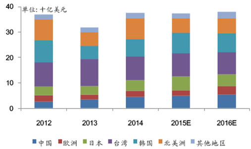 商。艾賽思公司(IXYS Corporation)成立于1983 年,納斯達克證券交易所上市公司,是全球能源管理半導體供應商,提供完整系列的功率產品和技術,從高端功率半導體產品到微控制單元,公司產品覆蓋能源市場系列產品90%以上。恩智浦半導體公司(NXP)由飛利浦公司創立,納斯達克證券交易所上市公司,擁有25,000 多項專利,全球超過24 個研發中心,是行業內最豐富的多重市場半導體產品供應商之一,產品包含從基礎器件到可提升媒體處理、無線連接與寬帶通信等功能復雜的芯片等。湖北臺基半導體股份有限公司成立于2004 年,注冊資本14,208 萬元。經營范圍為功率晶閘管、整流管、電力半導體模塊等大功率半導體元器件及其功率組件,汽車電子,電力半導體用散熱器,各種電力電子裝置的研制、生產、銷售。揚州揚杰電子科技股份有限公司成立于2006 年,注冊資本16,480 萬元,公司主營業務為分立器件芯片、功率二極管及整流橋等半導體分立器件產品的研發、制造與銷售。主營產品為半導體分立器件芯片、光伏二極管、全系列二極管、整流橋等。杭州士蘭微電子股份有限公司成立于1997 年,注冊資本124,716.80 萬元。士蘭微目前的產品和研發投入主要集中在以下三個領域:應用于消費類數字音視頻系統的集成電路產品;基于士蘭微電子集成電路芯片生產線的雙極、BiCMOS 和BCD 工藝為基礎的模擬、數字混合集成電路產品;基于士蘭微電子芯片生產線的半導體分立器件。吉林華微電子股份有限公司成立于1999 年,注冊資本73,808 萬元,是集功率半導體分立器件設計研發、芯片加工、封裝測試及產品營銷為一體的高新技術企業,擁有多條功率半導體分立器件及IC 芯片生產線,主要生產功率半導體分立器件及IC,應用于消費電子、節能照明、計算機、PC、汽車電子、通訊保護與工業控制等領域。截至2014年底,中國擁有3家年收入至少達到10億美元的半導體企業。普華永道中國通信、媒體及科技行業主管合伙人高建斌表示,“未來幾年預計將會有越來越多的中國半導體企業通過自身增長或者并購,使得公司年收入超越10億美元大關。”