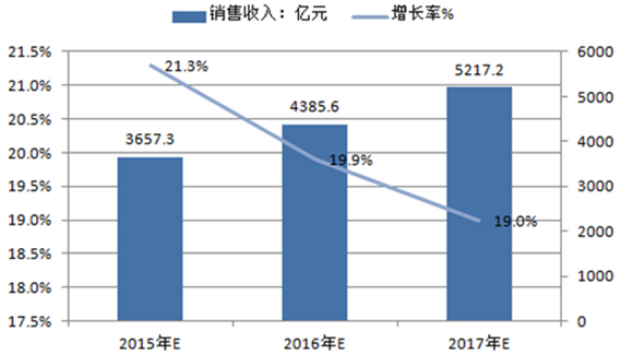 從產業鏈各環節的發展趨勢來看,IC 設計業仍將是未來國內集成電路產業中具發展活力的領域。預計在國內資本市場持續活躍的帶動下,大批IC 設計企業積極籌劃上市融資。國內IC 設計業不僅能夠獲得大量發展資金,更重要的,是通過財富效應的彰顯,更多的風險投資與海內外高端人才將被吸引投入到IC設計領域,從而極大推動國內IC 設計行業的發展。與此同時。諸多國內骨干IC設計企業正積極謀劃收購兼并國際企業,這也將為國內IC 設計業規模的擴張與實力的提升注入新的動力。預計未來 幾 年,國內IC 設計業銷售收入規模的年均增速將接近20%。到2017 年,IC 設計業規模預計將超過2000 億元。