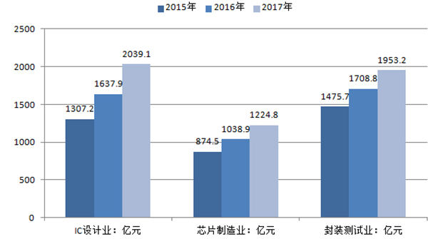 2015-2017 年中國集成電路產業各產業鏈銷售收入