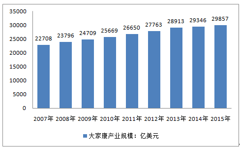 2007-2015年美國大健康產(chǎn)業(yè)規(guī)模走勢圖