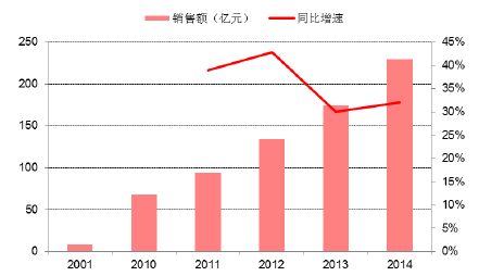 2001-2014年我國保健酒行業市場規模