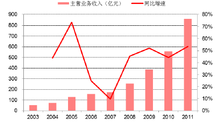 2004-2011年我國營養、保健食品企業主營收入