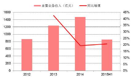 2012-2015年我國保健食品企業主營業務收入