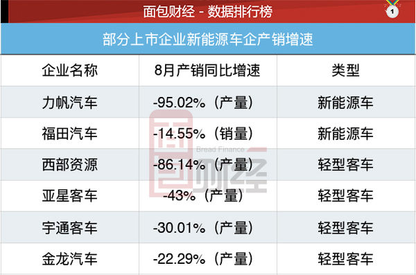 9月份的情況更糟糕。宇通客車公布的9月份產(chǎn)銷數(shù)據(jù)快報(bào)顯示,其汽車總產(chǎn)量增加4.56%。但該月輕型客車(以新能源為主)的銷量也大幅減少51.86%。曙光股份9月更是只生產(chǎn)了1輛新能源車,銷量則為0。