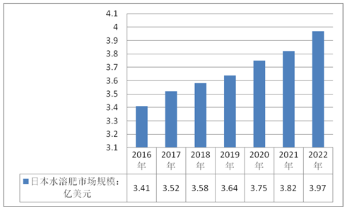 日本水溶肥行業未來幾年將保持一定的增速,預計到2022年日本水溶肥行業市場規模將達到3.97億美元。