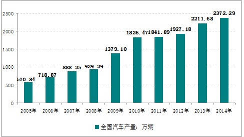 2005-2014年中國汽車產(chǎn)量統(tǒng)計圖