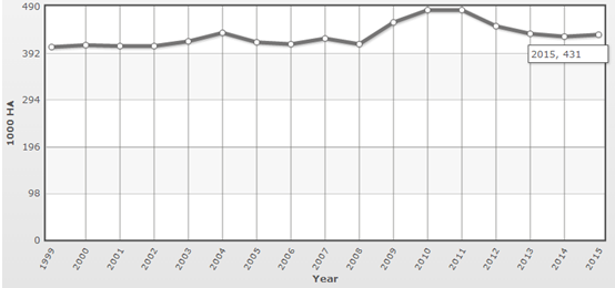 中經先略數據中心發布的《2016-2022年中國水稻行業市場運營態勢及發展前景預測報告》顯示,2015年歐洲水稻播種面積為43.1萬公頃,2015年歐洲國內稻米產量為205.5萬噸,產量較上年同期增長4.69%,預計2016年歐洲稻米產量在202.6萬噸左右。