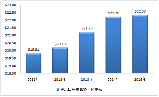 2011-2015年全球電吹風機進出口貿易總額:億美元
