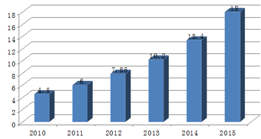 2010-2015年我國電子商務交易市場規模統計
