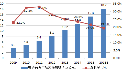 2009-2016年中國電子商務市場交易規模
