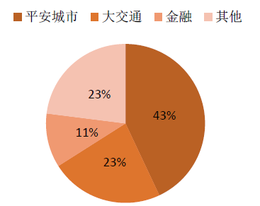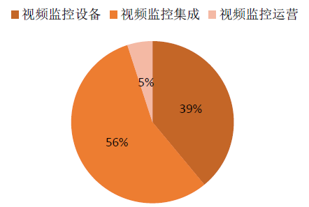 在視頻監控下游行業中,平安城市、大交通、金融行業占視頻監控市場的近80%,其中平安城市占視頻監控市場43%,是視頻監控產業的最大應用領域。目前視頻監控設備占總視頻監控市場產值的39%左右,集成占56%,運營占5%,隨著視頻監控向智能化、網絡化發展,集成商和運營商的重要性將越來越凸顯。