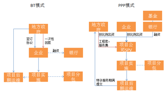 PPP 模式是Public—Private—Partnership 的字母縮寫,是“公共私營合作制”簡稱。廣義的PPP 泛指公私合作的投融資關系,按合同類型包括外包、特許經營和私有化三類;項目運作形式包括O&M、MC、LOT、TOT、ROT、BOT、BOO 等。狹義的PPP是政府與私人部門組成特殊目的機構(SPV),引入社會資本,共同設計開發,共同承擔風險,全過程合作,期滿后再移交政府的公共服務開發運營方式。