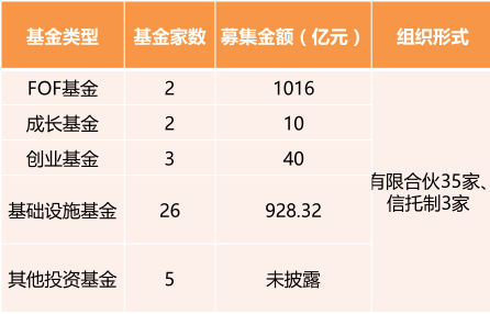 2015 年至今各方社會資本已自發成立了38 家PPP 基金,其中22 家披露了已經完成的募集金額,已完成的募集金額達1994.32 億元;28 支披露了擬投資行業,從PPP 基金擬投行業來看,交通運輸、水利/公共設施、城建是PPP 基金投資的重點領域,有11 支基金擬投資交通運輸領域、9 支基金擬投資于水利/公共設施領域。