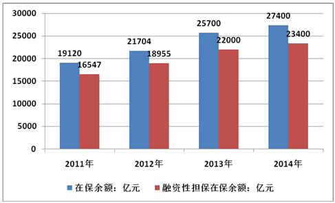 2011-2014年中國擔保行業在保余額情況