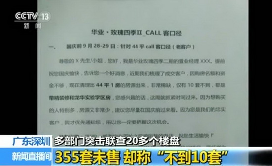突擊檢查中調查人員發現,開發商人為制造樓市火爆局面并非個別現象,有的開發商煞費心思,甚至專門印制統一口徑的文件,捏造樓市火爆的假象,又或者“捂盤惜售”,人為抬高房價。