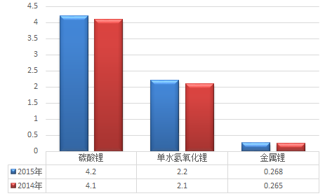 2015 年中國主要鋰產(chǎn)品產(chǎn)量(萬噸)