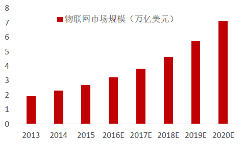 核心提示:物聯網所帶來的產業價值將比互聯網大30 倍,物聯網將成為下一個萬億美元級別的信息產業業務。據預測,2020年物聯網設備市場規模將激增至260 億美元,物聯網將使全球經濟增長1.9 萬億美元,全球將有240 億臺物聯網設備聯網。根據愛立信移動物聯網所帶來的產業價值將比互聯網大30 倍,物聯網將成為下一個萬億美元級別的信息產業業務。據預測,2020年物聯網設備市場規模將激增至260 億美元,物聯網將使全球經濟增長1.9 萬億美元,全球將有240 億臺物聯網設備聯網。根據愛立信移動市場報告,2015 年全球物聯網終端超過46 億,其中蜂窩物聯網終端達到4 億以上,預計到2018 年物聯網終端數將超過互聯網終端。