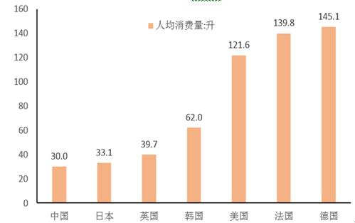 世界主要國家瓶裝水人均消費量