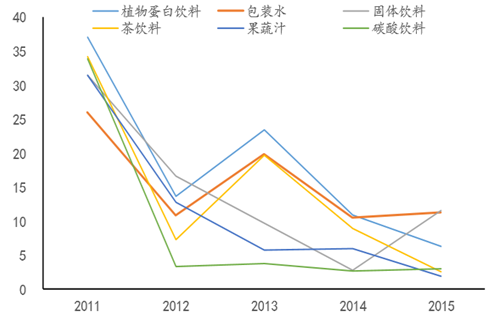 飲料子行業(yè)近五年 CAGR及 2015年增速