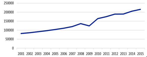 自 2008 年大幅降低利率以來,臺灣地區不斷加大 海外投資比例,截至 2016 年 6 月份,海外資產配置已達 60.73%,相比較 2008 年 30.31% 提升了一倍左右。對于出口導向型經濟為主的臺灣地區,大幅度提高海外資產配置比例有利 于在島內經濟下行、利率降低的情況下保持較高收益率,從而保障保險業的償付能力,為保 險業提高持續發展的動力。