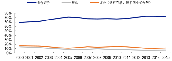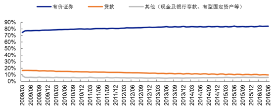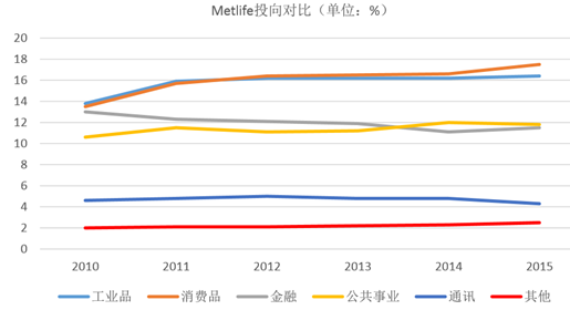 以美國規模最大的壽險公司 Metlife 為例,由于低利率環境下導致金融產品收益減少,市場預期相對悲觀,因此在公司的險資配置中,金融類投資占比不斷降低,從 2011 年 13%跌至 2015 年 11%左右。